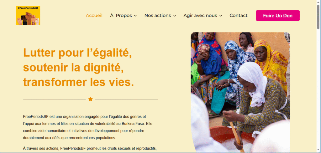 Notre entreprise a accompagné la création et le développement du site FreePeriodsBF (freeperiodsbf.fr) pour une organisation engagée dans la promotion de la santé menstruelle et l’autonomisation des femmes et filles au Burkina Faso. 🔹 Objectif du projetConcevoir une plateforme digitale professionnelle et ergonomique qui mette en valeur les actions de l’association, informe le public sur […]